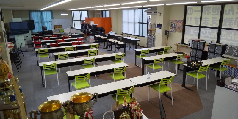 都内有数の広い教室を活かし、さらに机の配置を工夫することにより、生徒間の距離を十分にとって授業を行います。