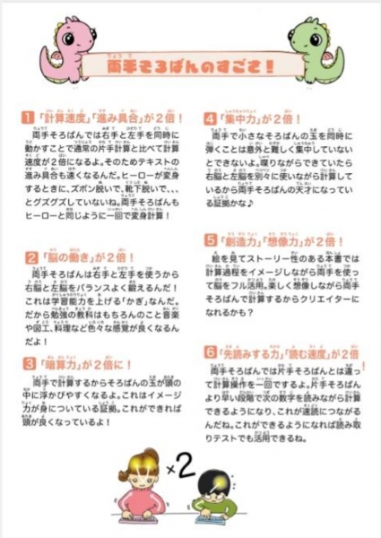 新入会の生徒に『両手そろばん』のテキストを使用したところ、皆集中力が半端なく凄く、テキストの効力に驚いているところです!!