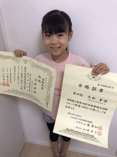 4級合格 上原 珠樹さん(小2)