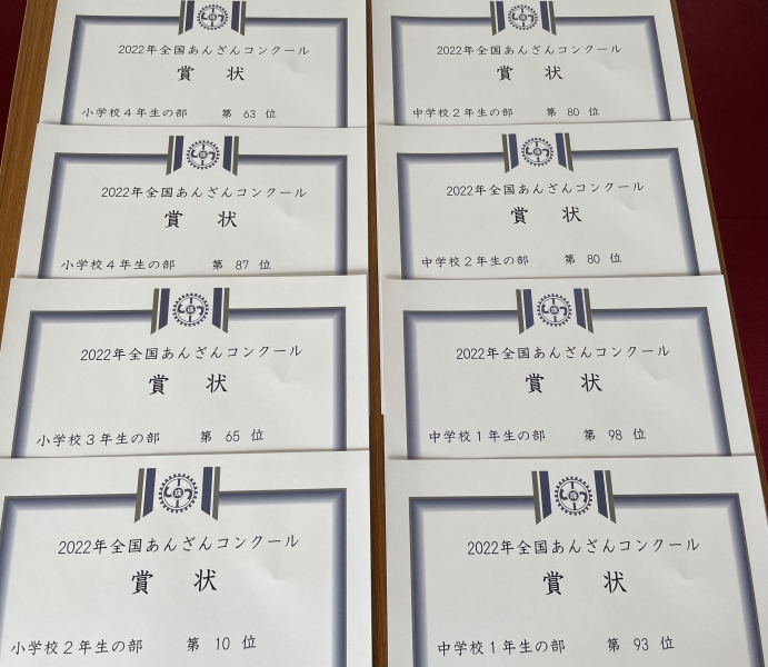 2023年全国あんざんコンクール 川崎大会&教室参加の成績