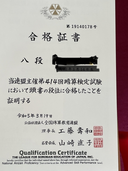 ただ、計算能力はあっても算数力と理解力と努力が伴わないとなかなか段は上がらないです。