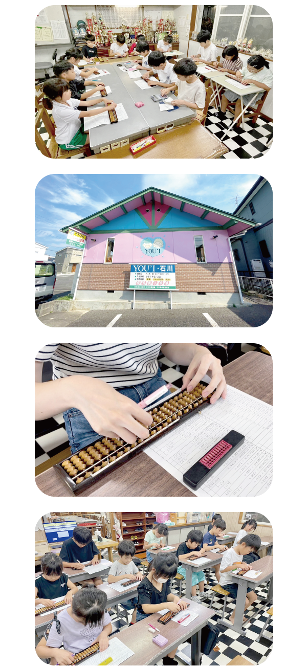 | ・珠算、暗算だけでなく読上算、 フラッシュ暗算、電卓(希望者)の 指導も行っています! ・十段をはじめ、段位合格者多数在籍! (日本珠算連盟加盟) ・検定試験の受験や競技大会へ 積極的に参加しています! ・遠足やお楽しみ会など、 楽しいイベント多数! |