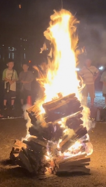 キャンプではそろばんの練習だけではなく、キャンプファイヤーやかくし芸大会、運動会など、全員が参加するレクリエーションを行いました。