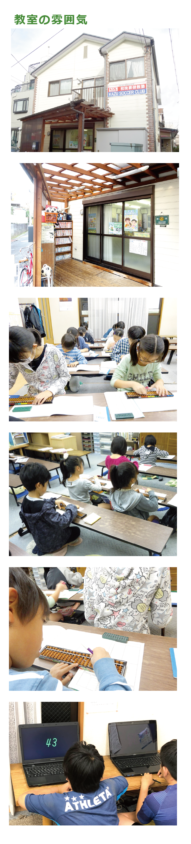 ・学習塾や部活などで、スケジュールが合わなくなった場合でも、そろばんの学習を続けることができます。